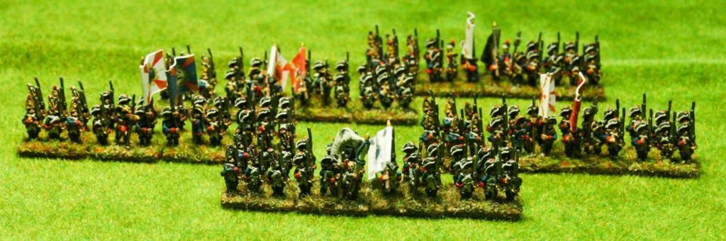Con esto, doy casi por completado el ejército. He pasado de 8 batallones de línea a 13 (y 2 de granaderos), con lo que es un aumento del 60%. Me quedan unos morteros por pintar, pero como no se usan ni en el Might & Reason, ni en el Maurice, me lo tomaré con calma, para rellenar huecos entre cosas