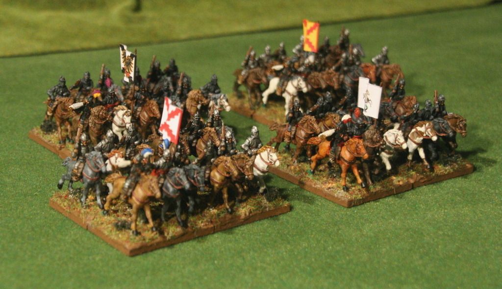 En un principio, voy a llevar 4 unidades (o battle groups) para FoG-R, y en la lista clasifican como de dos calidades diferentes, una ligeramente superior a otra. Por ello, decidí pintar los grupos con dos esquemas de colores. Unos llevan la coraza pavonada de negro y otros metálica; simple y efectivo.