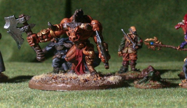 Si, es un minotauro. Si, es enorme. Si, es de plomo. Esta mini la pillé para poder meter un toque de fantasía a mis partidas de Jugula. Si vamos a crear una arena interesante, fijo que un minotauro le da una vuelta de tuerca. A renglón de esto, ando pintando ahora un león, una leona y un tigre dientes de sable para poder meterlos también :-)