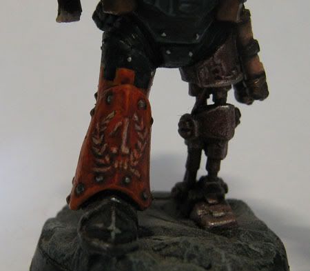 ¡ Mas fuerte que el Necron seguro ! jeje ... tengo que sacar una foto de lado para que se vea la posicion del pie ... en realidad se ve como que esta aplastando el brazo del Necron ... que se sigue retorciendo en el piso ( son duros estos bichos).
