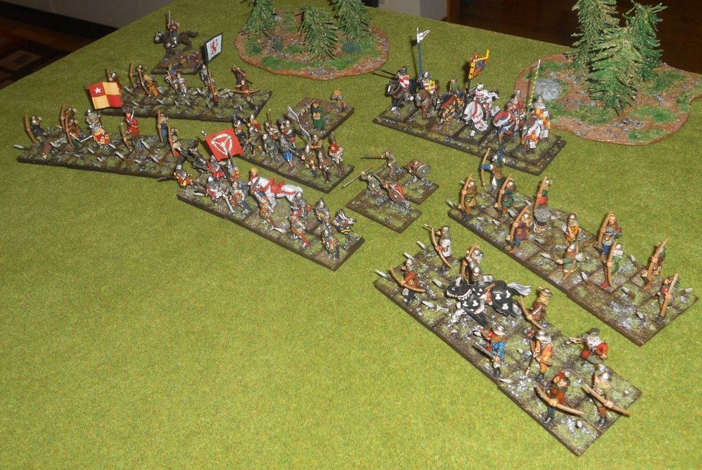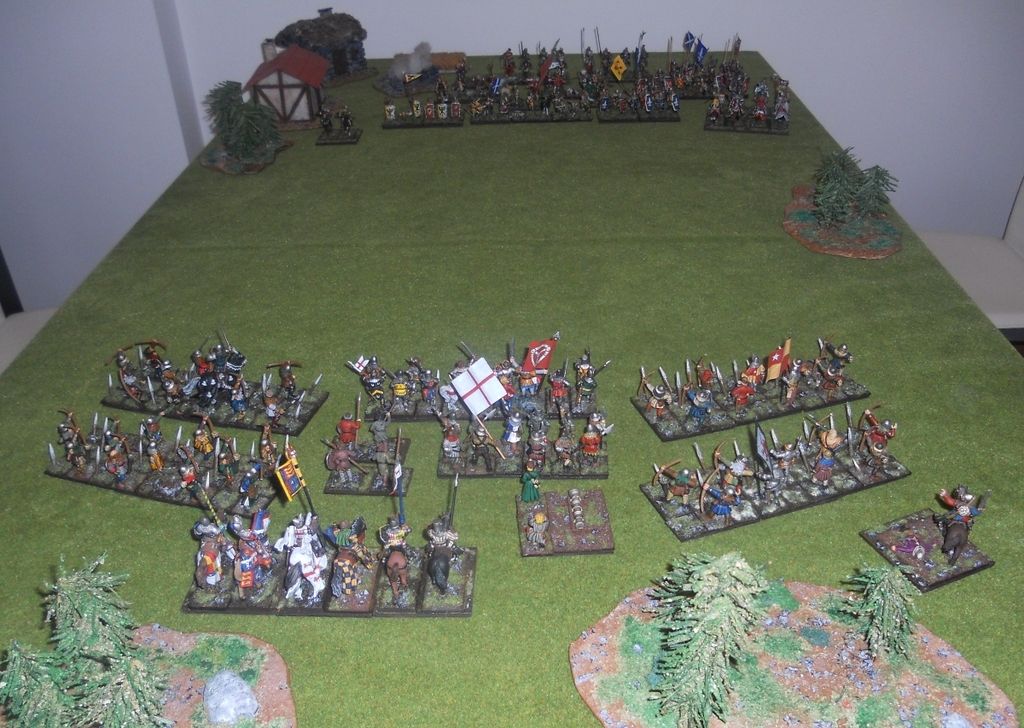 Para conmemorar el 600º aniversario que se celebra este domingo, ahí va mi pequeño homenaje, terminando así un proyecto con el que llevaba ya tiempo a vueltas. Dos ejércitos (francés e inglés) que intentan emular en parte los órdenes de batalla y algunos personajes que se dieron cita en la misma, aún con algunas licencias que me he tomado.