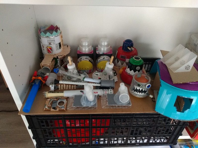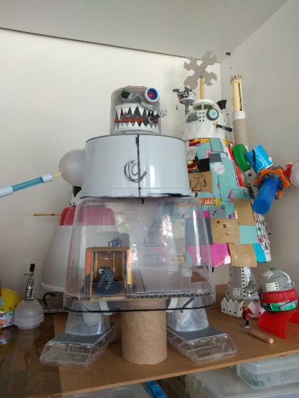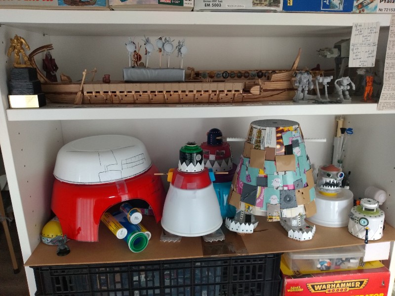 Bueno, yo tengo la inmensa suerte de que mi compañera de piso me ha dejado que utilice una pequeña terraza cerrada como mini-taller, así que el material reciclado almacenado, las estanterías de maquetas, los trirremes, los Stompas y yo convivimos como podemos en un rincón privado...