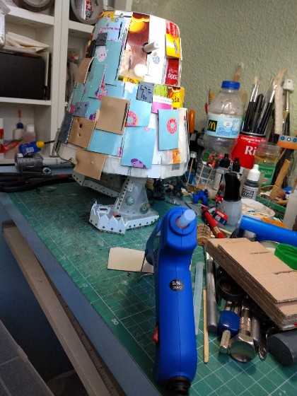 Hoy he estado saltando del Stompa pequeño al grande, solucionando problemas para completar la estructura interna del Gargante, y por fin he dado con una configuración válida para el Gargante del Mekániko (que el pobre es el que llevo más retrasado, solo con la cabeza terminada y los pies a medio hacer).