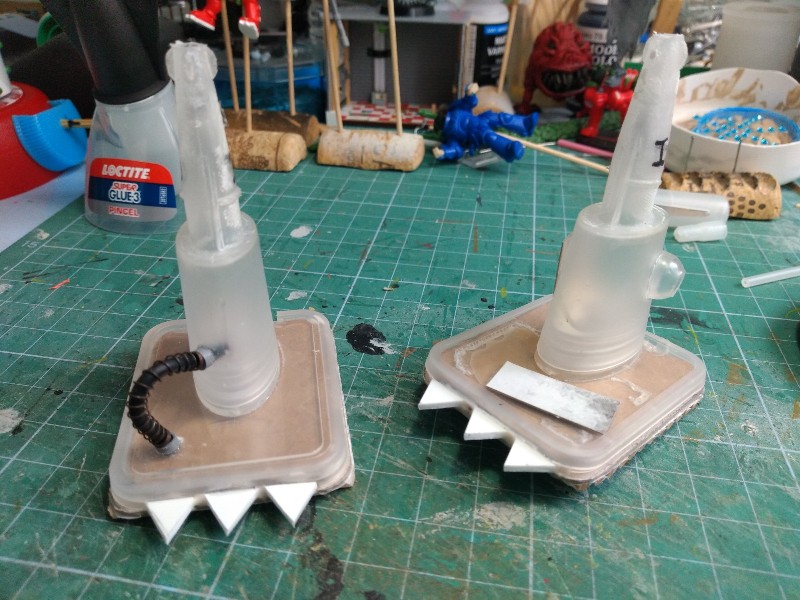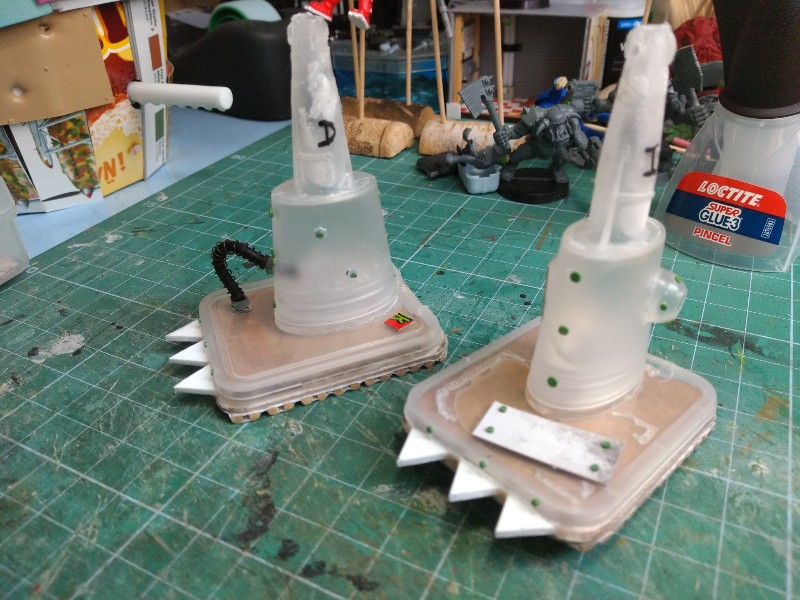 Pegamos cada elemento en su sitio, y añadimos un par de detalles más para romper la simetría de ambas piezas (estos cables sucedáneos de los que pone Suber hechos con masilla están dando mucho juego): (280)
