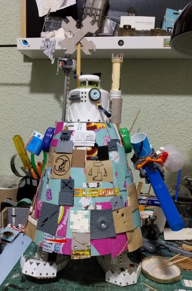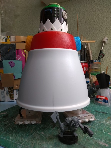 Puestos los pies que hemos terminado antes en el Stompa pequeño (que aún no tiene nombre, por cierto; Acepto sugerencias), podemos apreciar la altura definitiva del bicho (éste llevará una sola chimenea baja en la espalda, que no asomará por delante). Queda bastante aparente: (287)