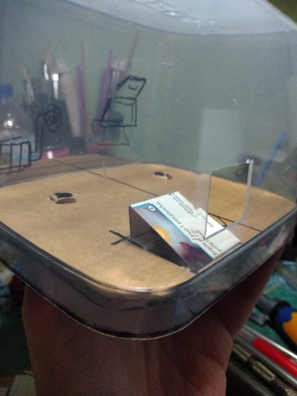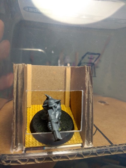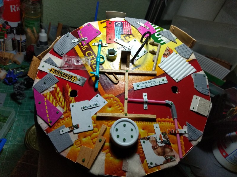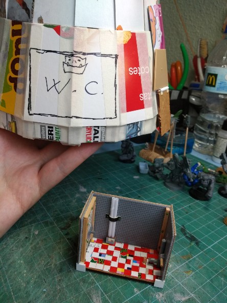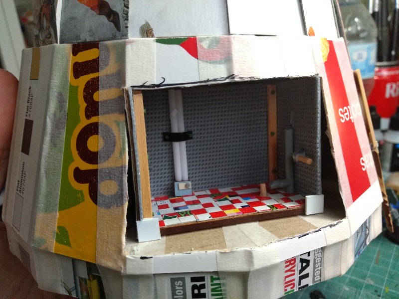 En torno a la plataforma inclinada levantamos una estructura de cartón y madera, para representar la habitación en la que está nuestro amigo gretchin traidor: (318)