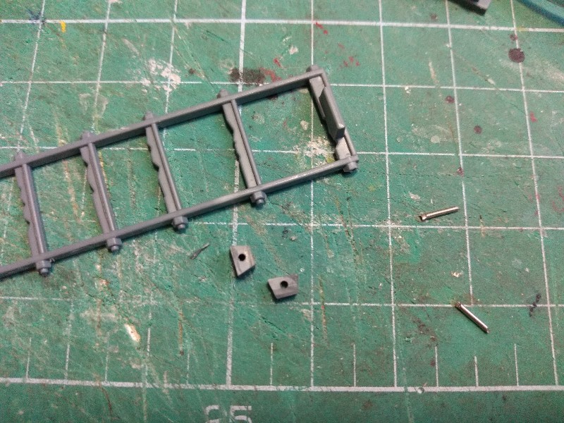 Le vamos a poner también una escalera de acceso en la parte de atrás, y queremos que además ésta pueda bascular, así que nos inventamos un sistema de bisagras con trozos de trama de plástico y alfileres: (311)