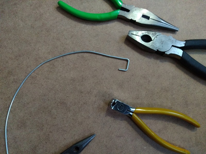 En el otro lado llevará una sección de escalera con peldaños de metal (la típica de las alcantarillas); la haremos con alambre grueso, al que daremos forma con la punta de los alicates: (312)