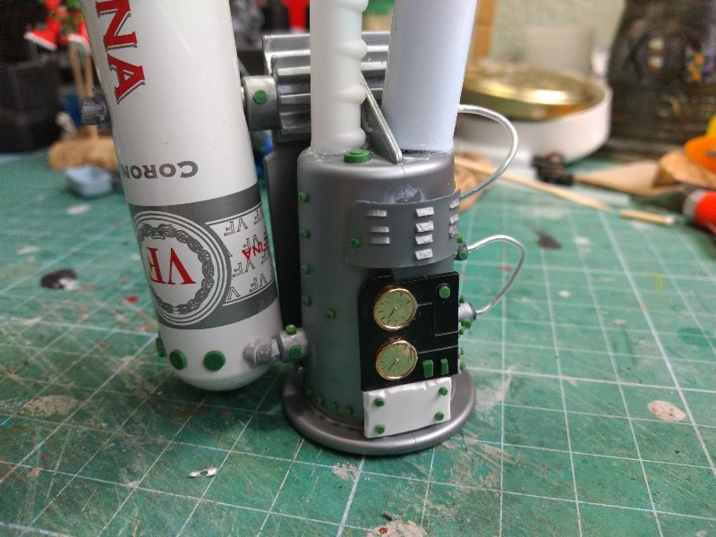 Seguimos trabajando con la espalda del Stompa grandullón. Teníamos el plan general de chimeneas y caldera, así que le vamos añadiendo más detalles: (290)