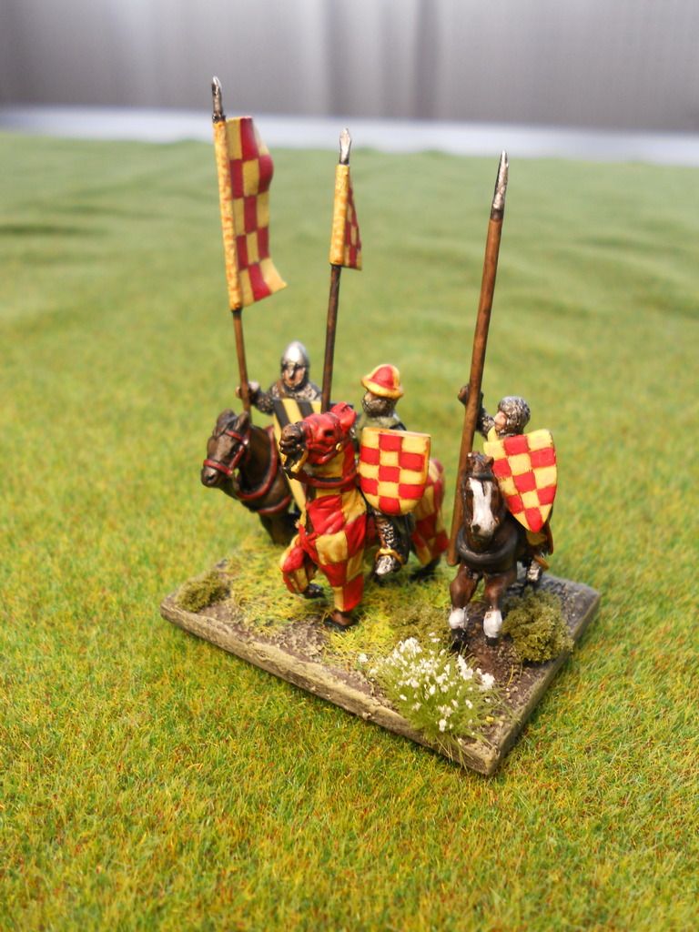 Al igual que con los caballeros villanos mi idea es personalizar cada base, así en cada una de ellas representaré a uno o más nobles o personajes relevantes castellanos. Para encontrar la heráldica o las señas correspondientes a cada uno he trillado internet, ya que en la bibliografía de que dispongo solo vienen retazos de las señas de los caballeros más importantes, y aún así la búsqueda no ha sido todo lo fructífera que yo esperaba, pero bueno alguna cosilla si he sacado.
