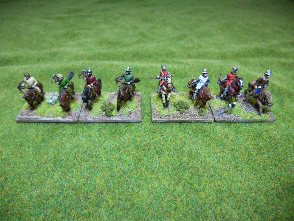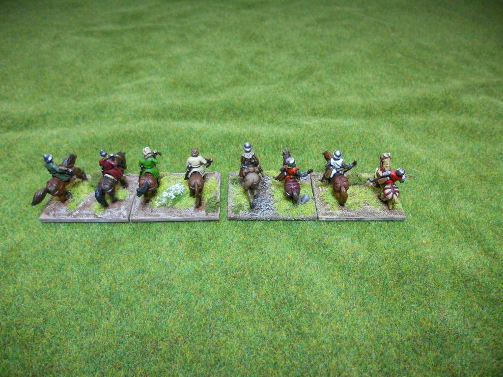 Bueno, vamos con unas bases de ballesteros a caballo, las dos de la izquierda de la primera foto son ballesteros granainos, por supuesto no me pude resistir a la tentación y les cambié las cabezas a todos menos a uno, bueno y con los cristianos otro tanto (tengo que hacerme mirar esa dichosa manía de cortar cabezas  ;D  ).