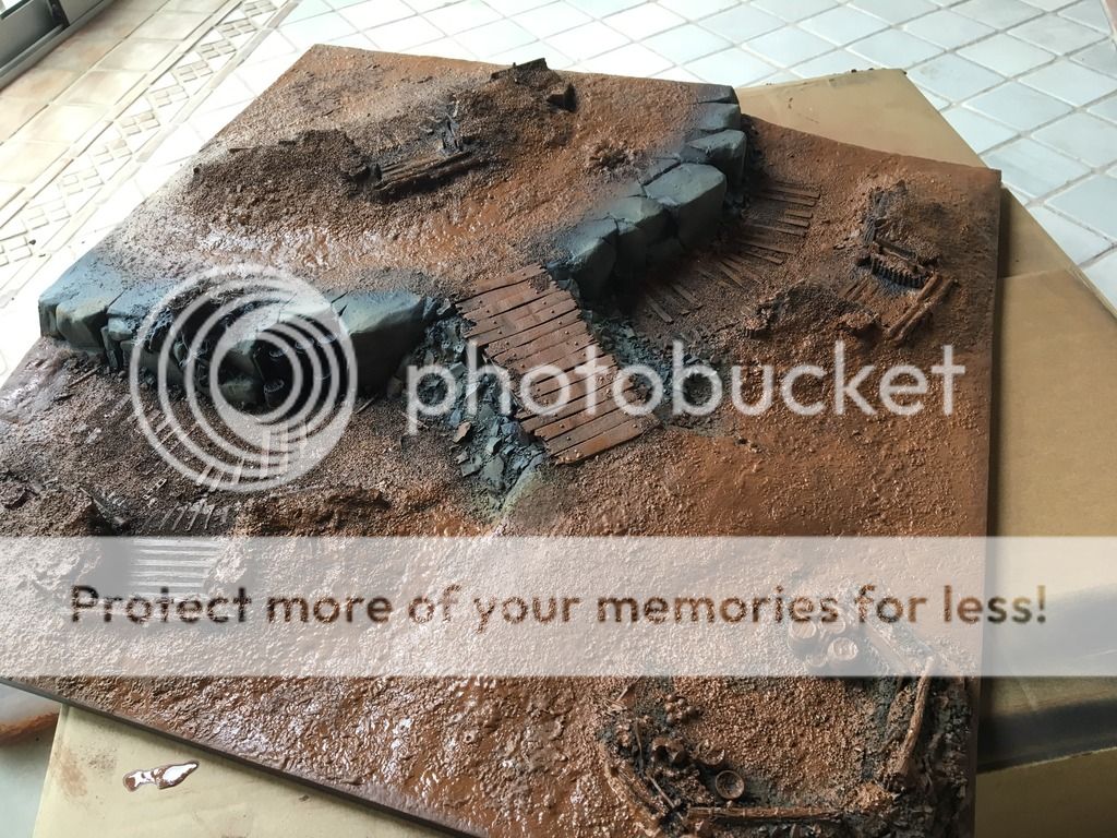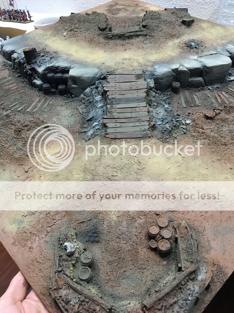 El bastión/trinchera/obra de asedio te está quedando de lujo. La única sugerencia que se me ocurre es que no te cortes poniendo hierba, que ultimamente al personal le ha dado por el look 1ª guerra mundial/señores del acero y me parece que para Warhammer/renacimiento/barroco está un poco fuera de tono. Animo! :vik :vik :vik