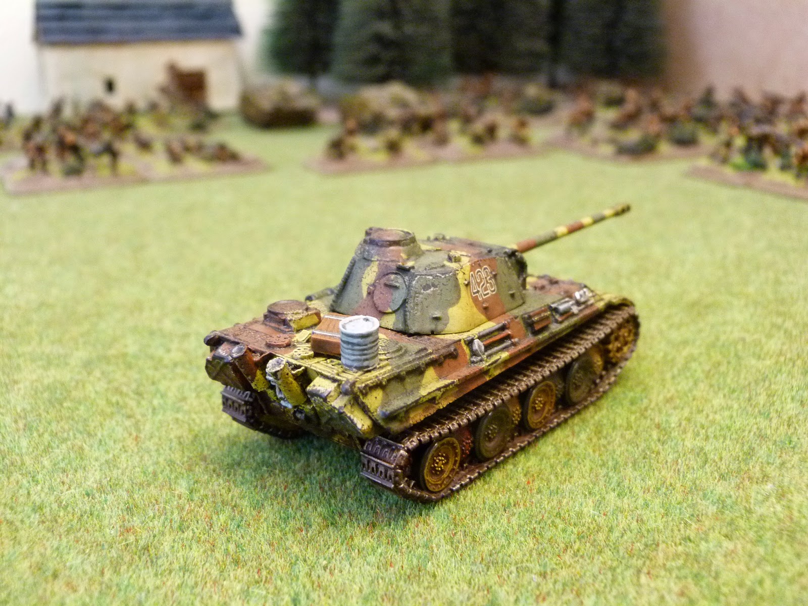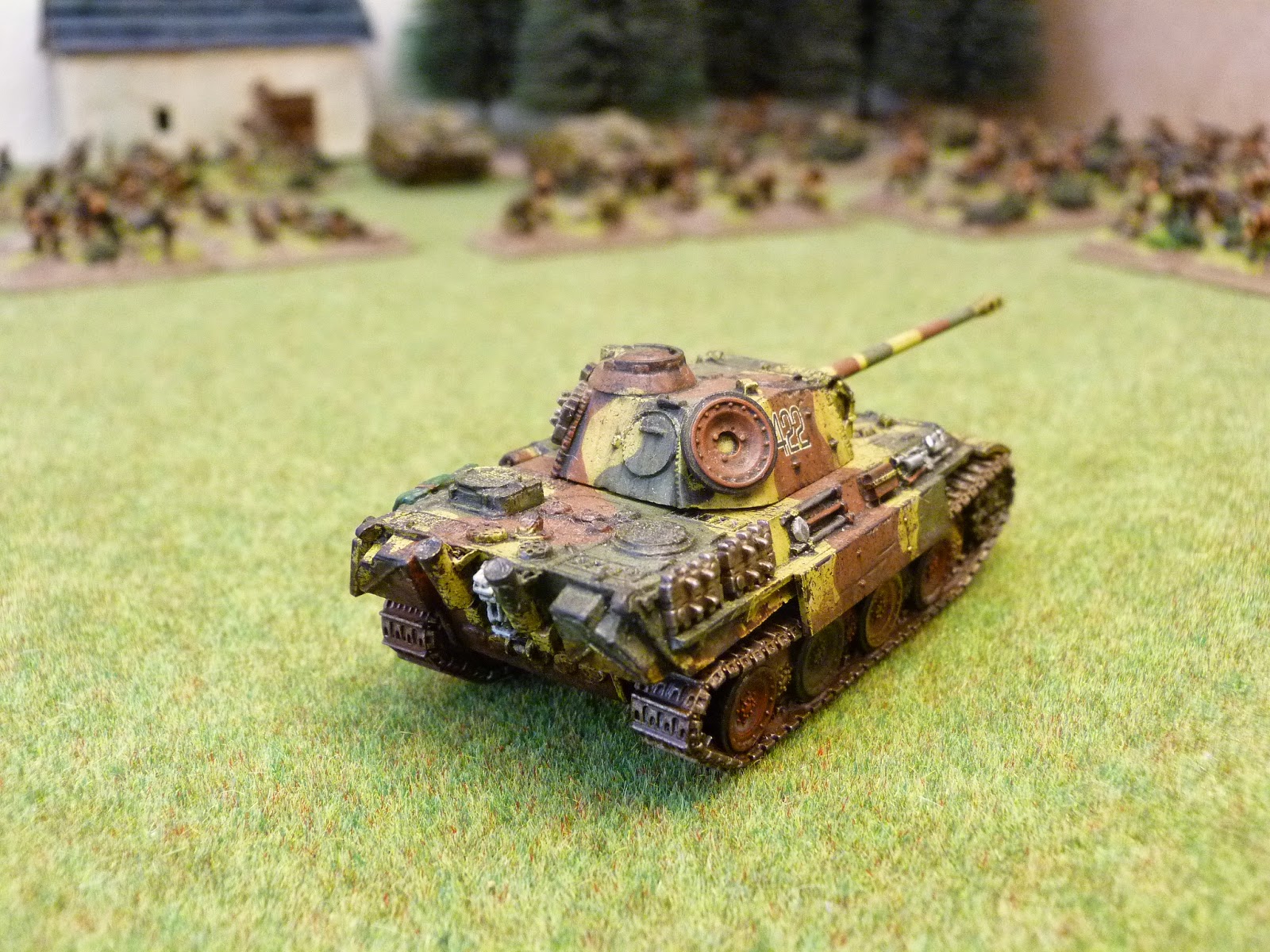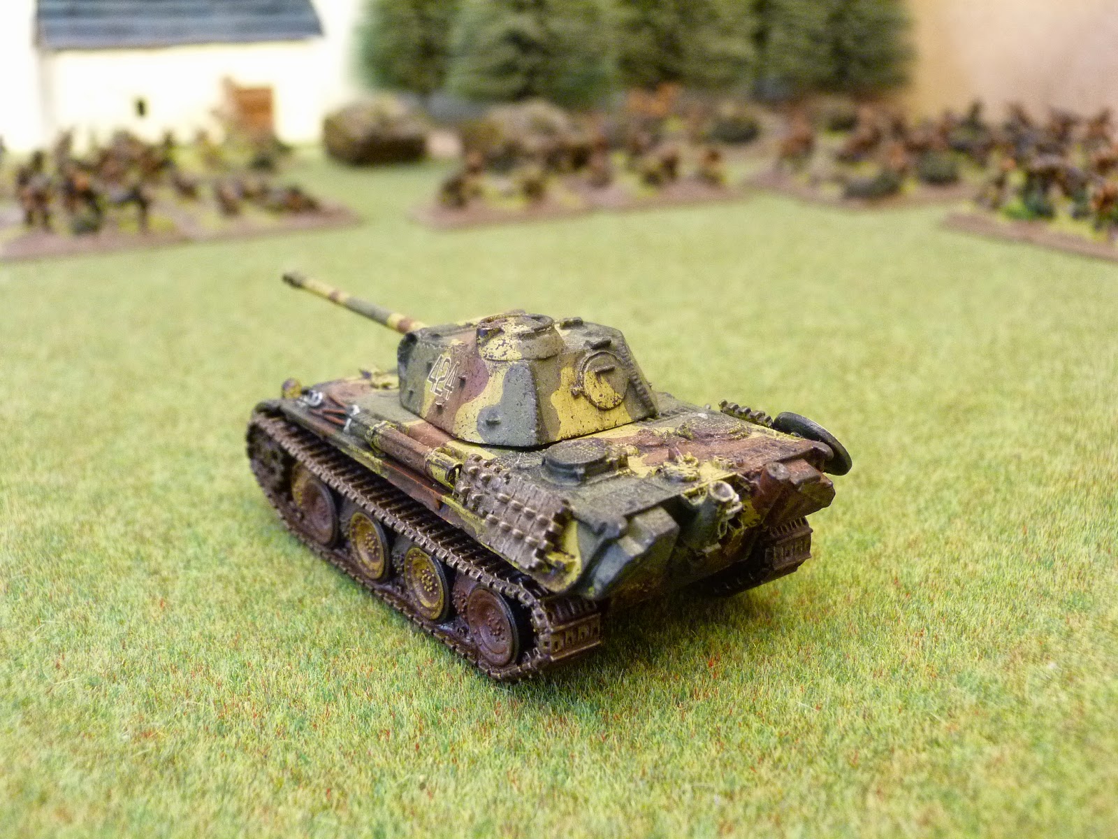 He terminado una caja de Panthers G para FoW. La capa de barniz ha acabado con el efecto de los pigmentos y se me ha acumulado en las orugas afeandolas bastantes, además, me he pasado un poco con los desconchones :-[. A pesar de ello el resultado final no me disgusta teniendo en cuenta que son de los primeros tanques que pinto. Estoy deseando ponerme con los siguientes para ir corrigiendo errores.