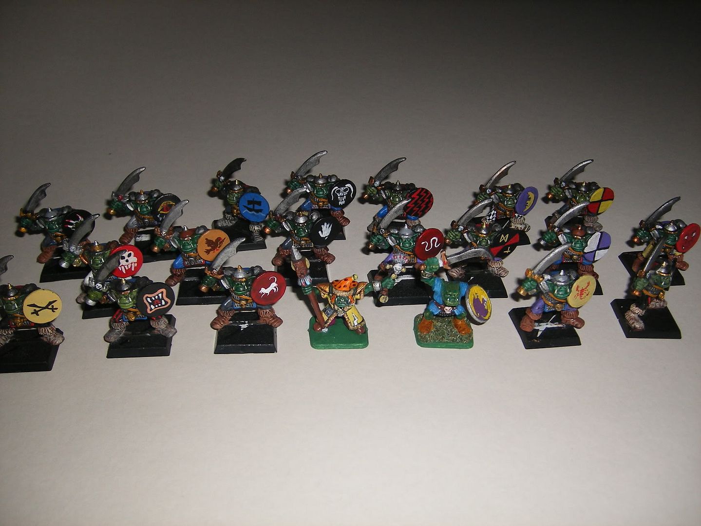 La mitad de los orcos ya los había pintado hace años. La otra mitad y el shaman del heroquest los compré de segunda mano en este propio foro. ¿Ideas para las bases? (me da que les voy a poner el terreno quemado como al elefante, que con cesped quedarían demasiado verdes).