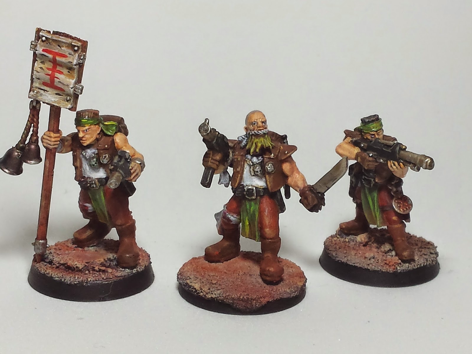 Quizás le faltan alguna lucecilla, pero están muy bien terminados, mención especial el ojo bionico del acólito. Muy interesante tu banda de inquisidores, y también que incluyas miniaturas de necromunda.