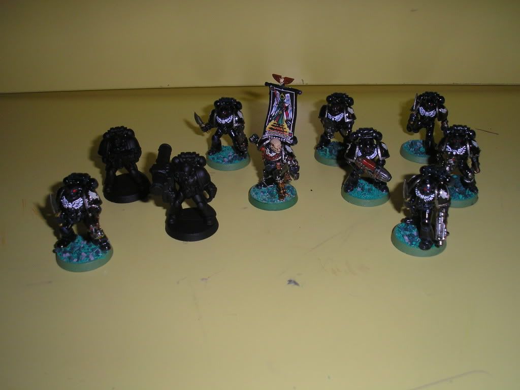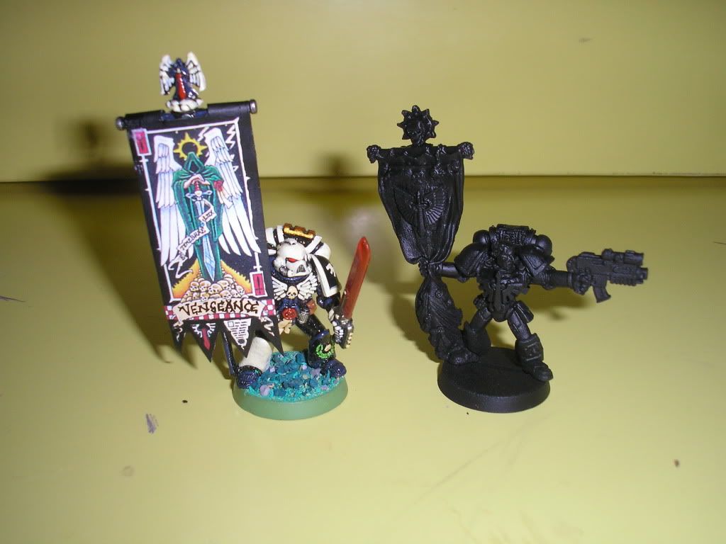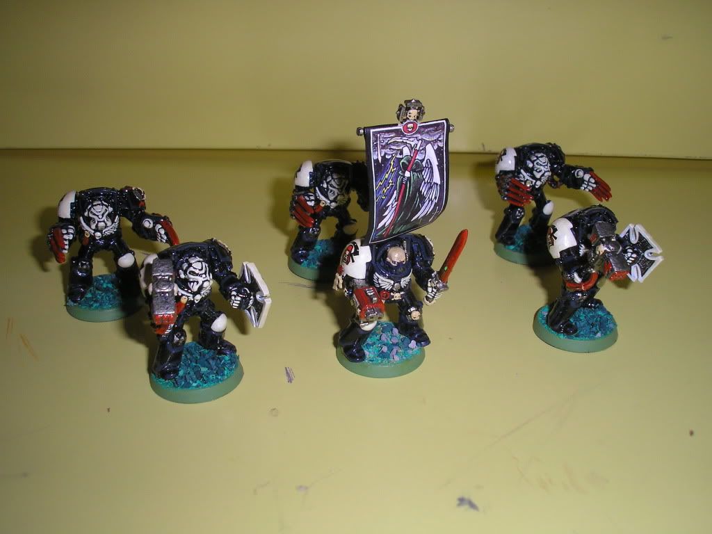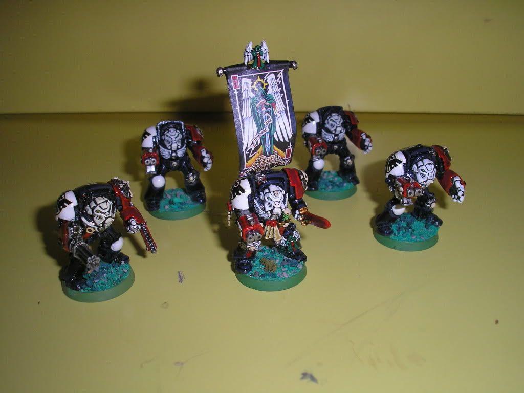 Se trata de un Capítulo de la Segunda Creación, los Angeles de Venganza. Está basado en el color original de los Angeles Oscuros, cuando la armadura era negra... (si encuentro el primer libro -un folleto en realidad- sobre cómo pintar marines espaciales, donde aparecían los primeros capítulos, le saco una foto y la subo... al menos los han mantenido en la última versión de codex)