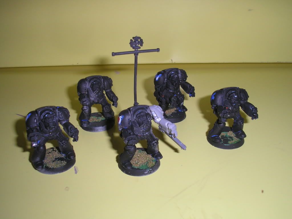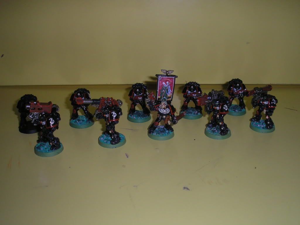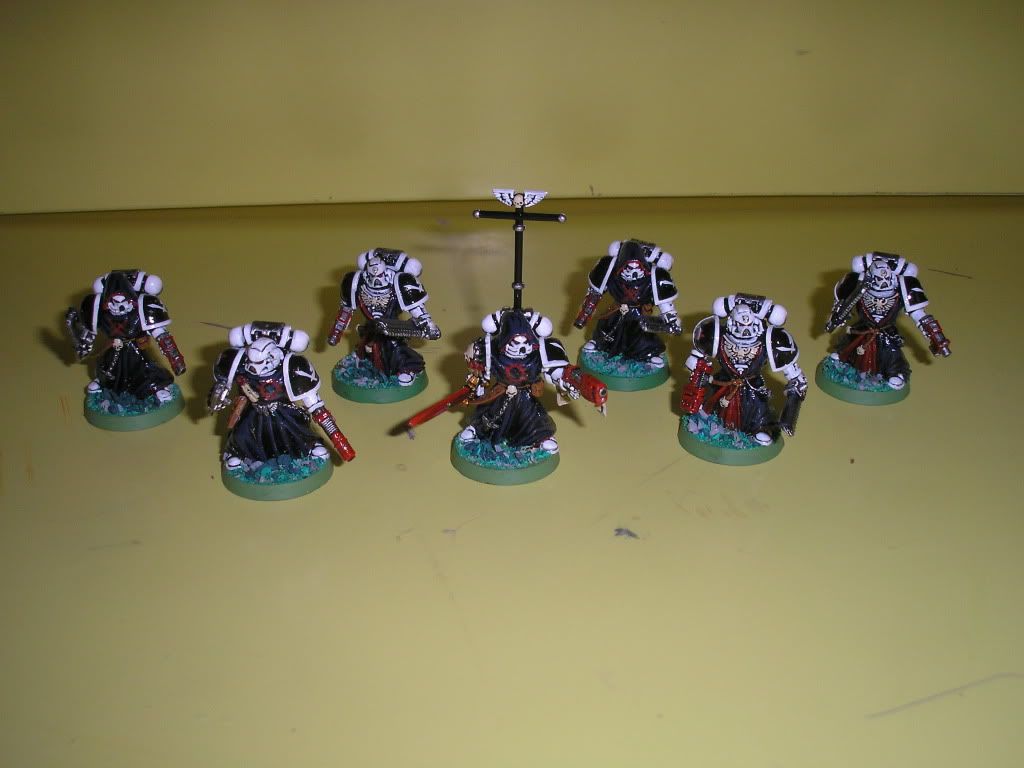 Empecemos por lo fácil. Tengo un ejército de Angeles Oscuros que nació con la segunda edición de Warhammer 40.000. La criatura tendrá unos 18 ó 20 años, y la mayor parte de ese tiempo lo ha pasado en una caja. Con el Codex de la 4ª edición tuvo pequeños añadidos, en forma de emblemas de los Angeles Oscuros y alguna nueva mini, pero aún sigue sin pintar... hasta ahora.