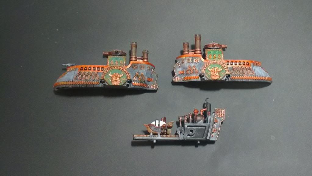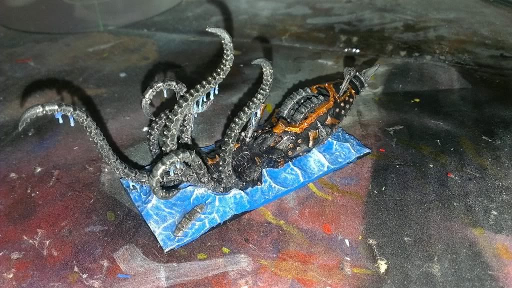 Pues sigo, hoy estaba desatado y me he acabado de golpe dos barquitos mas, el Trueno y el kraken. Buena compra la de la plata, me gusta el efecto final. Como siempre el movil me exagera los colores, el rojo del trueno no es rojo, es cobre, del estilo al del kraken, que lo he sacado con flash ya que no me iba a quemar los colores al ser mayormente negro y plateado