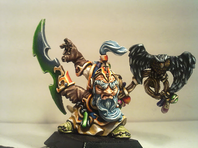 Como he perdido el otro tema, no sé si empezar otro nuevo, o continuar el antiguo si se logran recuperar los otros post... Sea como sea, ahi va mi última miniatura del año: el héroe alquimista Enano. Por ahora, la banda enana está completa a falta de basearlos, pero eso cuando tenga algo de terreno apropiado.