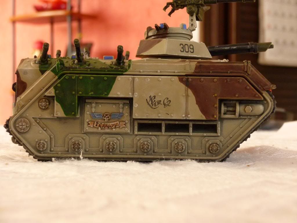 Alarick, buen trabajo. No me gusta el esquema de color, pero eso es algo personal. el acabado es muy bueno y solo necesitaría algo de desgaste... El libro que ha sacado GW titulado ´´como pintar tanques Citadel´´ es muy bueno para aprender técnicas desde sencillas a medio avanzados (para avanzadas de verdad, hay que echar un vistazo al equivalente de Forge World)