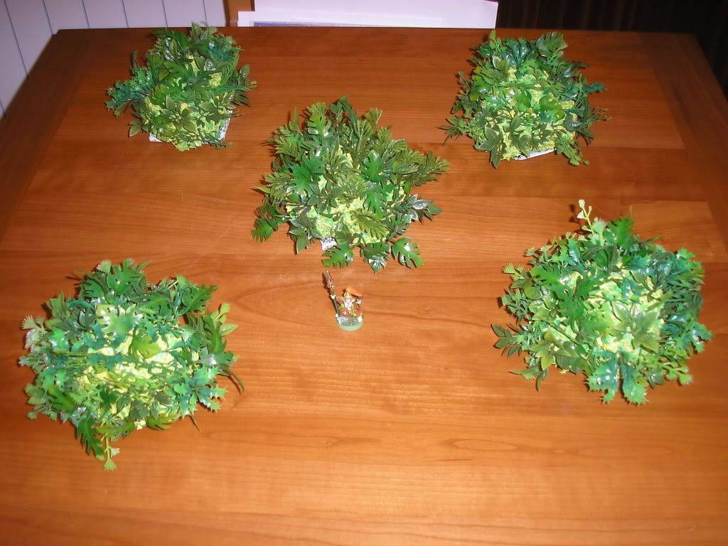 Si, espuma de la de relleno de ventanas, puertas, etc... Cubierta de cola y serrín y pintada de verde con pincel seco de amarillo. Luego la recubrí de hojas pinchadas de plantas de plástico de los chinos.