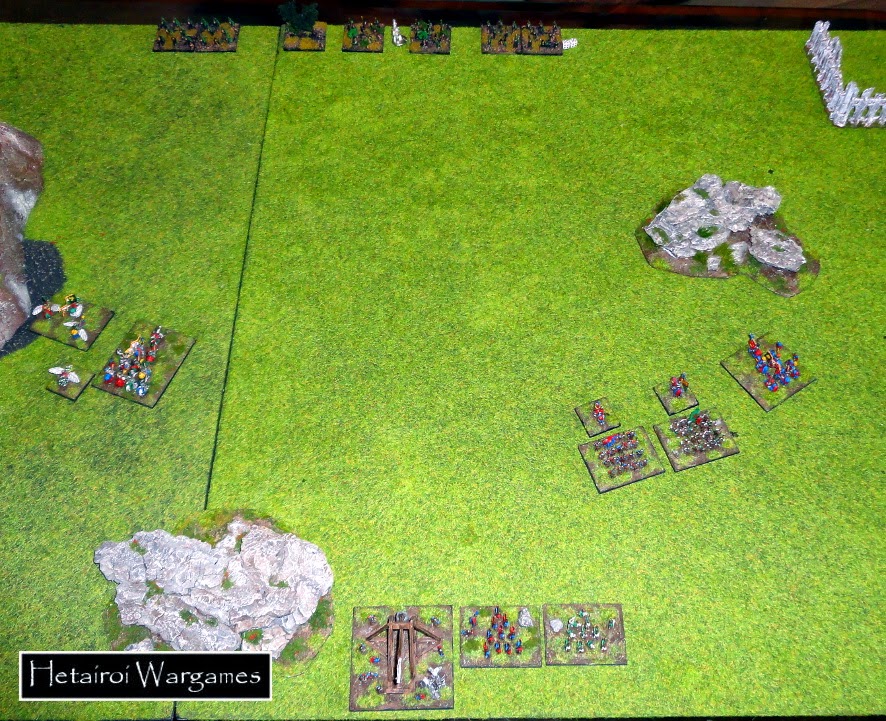 Yo jugué en 3x3 (los regimientos) y 6x3 (las hordas), y Hetairoi con 4x4 y 4x6 (creo)