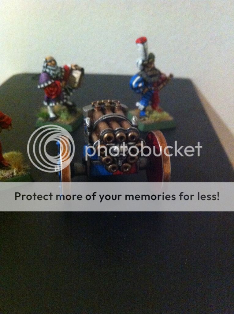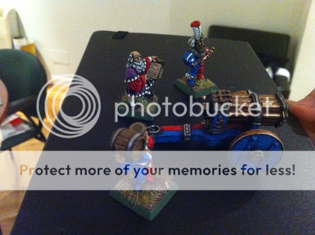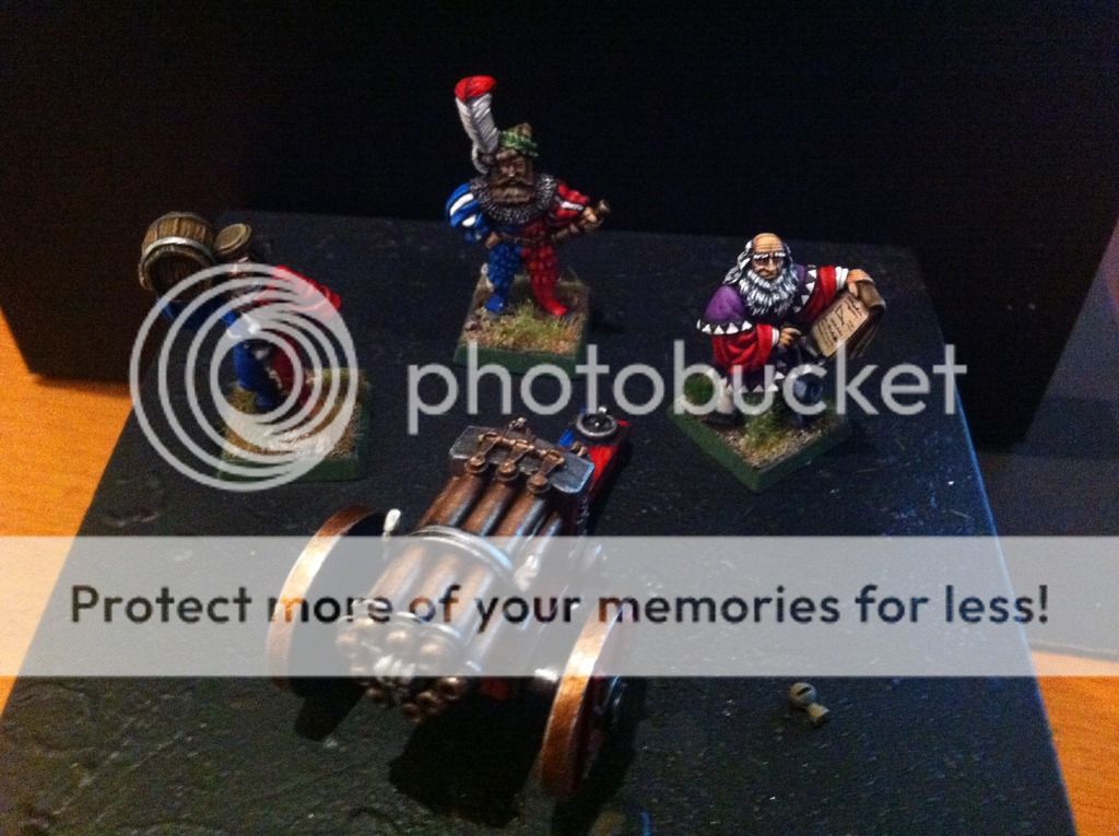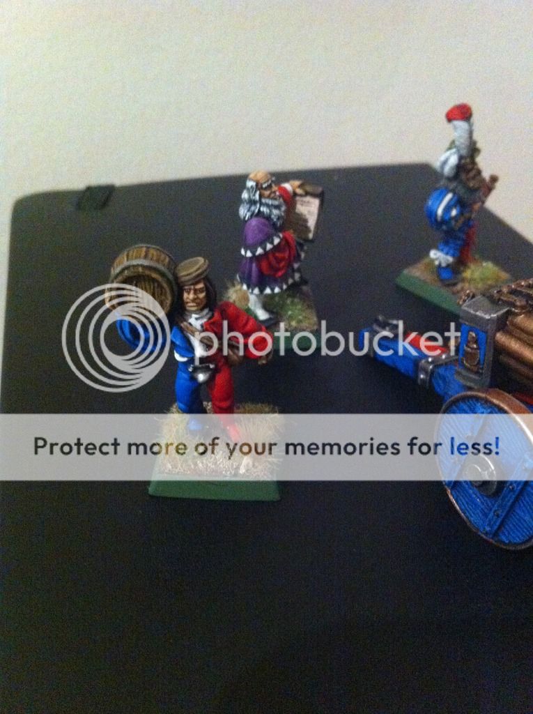 Mucho tiempo sin postear nada aquí... lo último que he pintado es el antiguo cañón de Salvas imperial, con Leonardo de Miragliano, artillero y oficial artillero con los colores de Altdorf.  Lo siguiente de este proyecto, van a ser los alabarderos monopose de plastico con su grupo de mando en metal, con el mismo esquema de pintura que traían en su cajita.