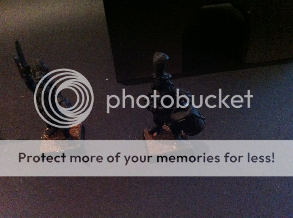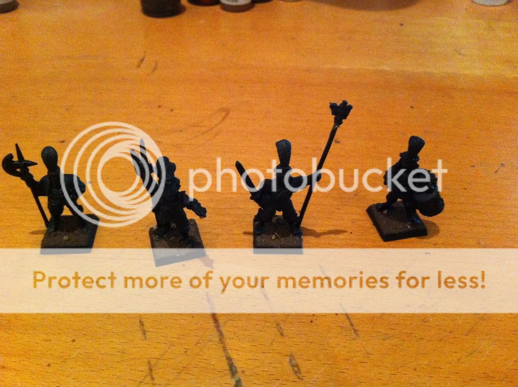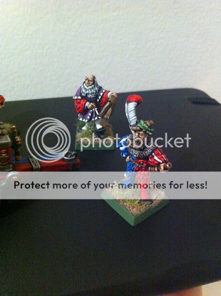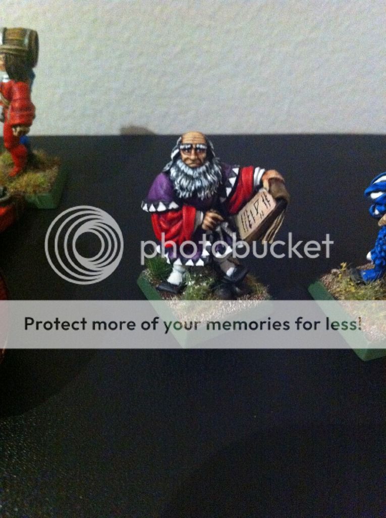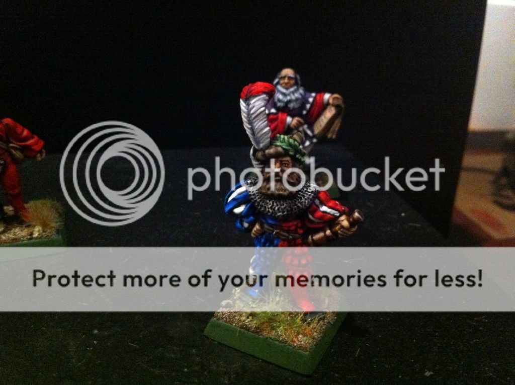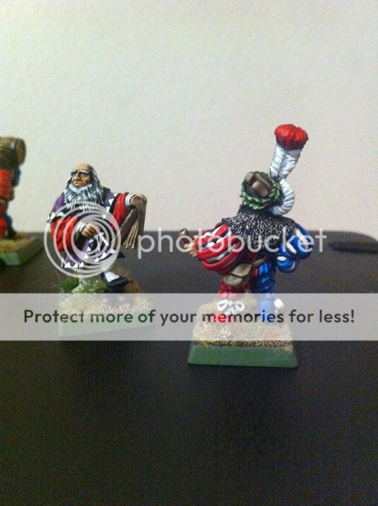Tambien he hecho unas fotillos del grupo de mando. La bandera aun me estoy decidiendo, pero tengo (por ebay) las whitedwarf de hace siglos y vienen banderas en papel, asi que no me preocupa.