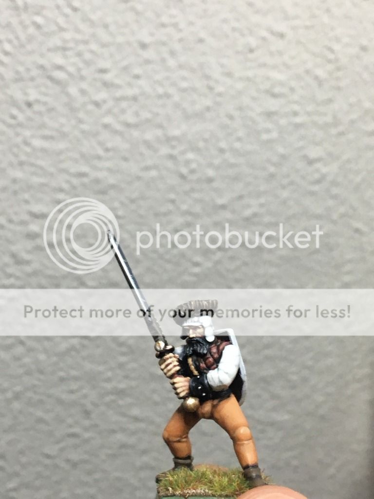 Por aquí la banda, recién pintada menos el capitan y el arquero, que tienen 3 añitos. Pintaré algunos tipos mas para esta banda.