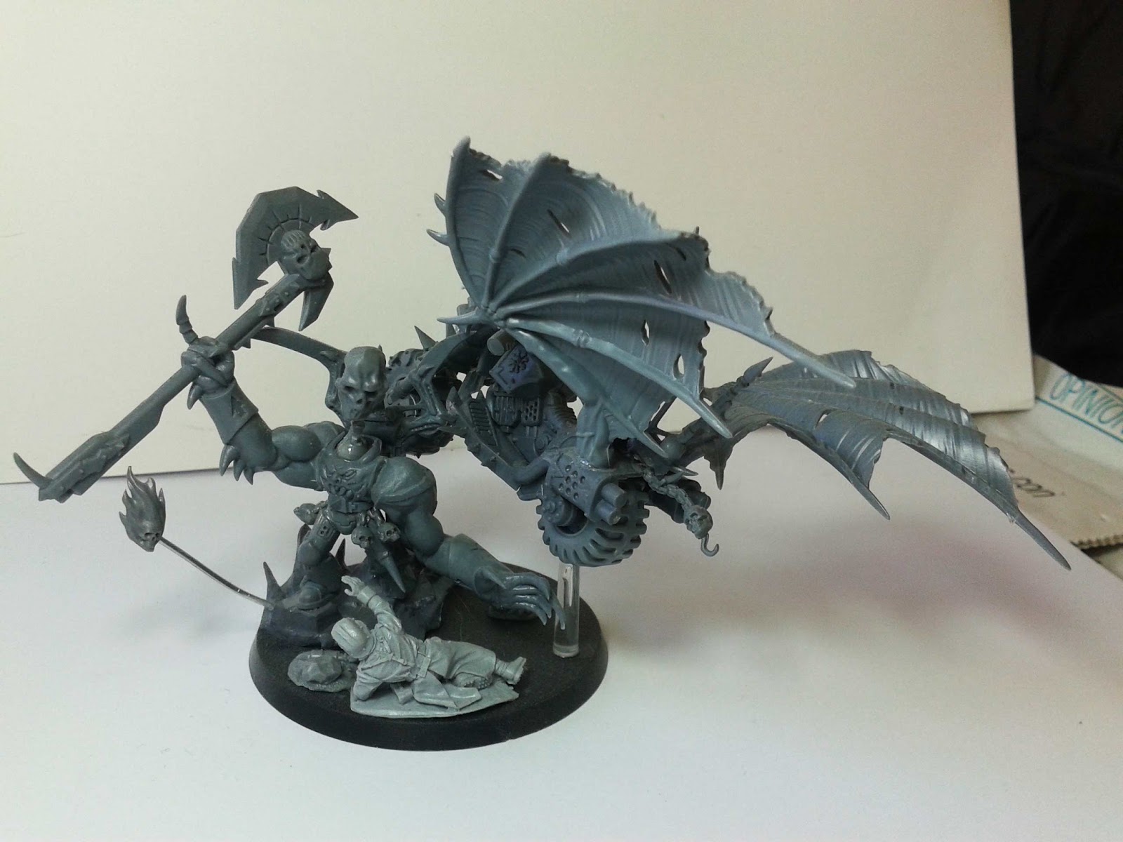 Quería montar un segundo Príncipe Demonio para mi ejército de Hijos del Emperador y se me ocurrió, mirando las piezas que tenía por casa, hacer una versión propia del Motorista Infernal, lo más extraña posible. Podéis ver más fotos y explicaciones en el blog: http://orgullofreak.blogspot.com.es/2013/05/motorista-infernal-ultimos-hijos.html