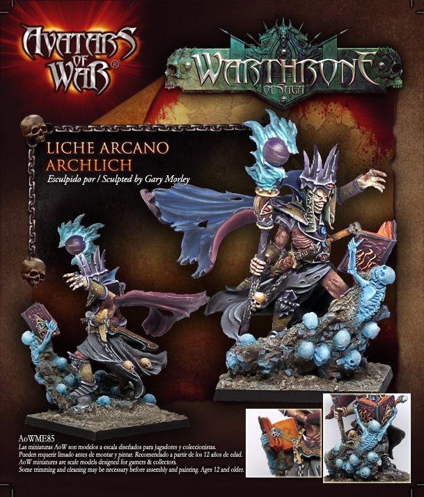Yo no veo la relación, Mantic ya tiene desde hace años dos Lichs(liches?) en su catalogo de KoW, ambos en peana de 40mm