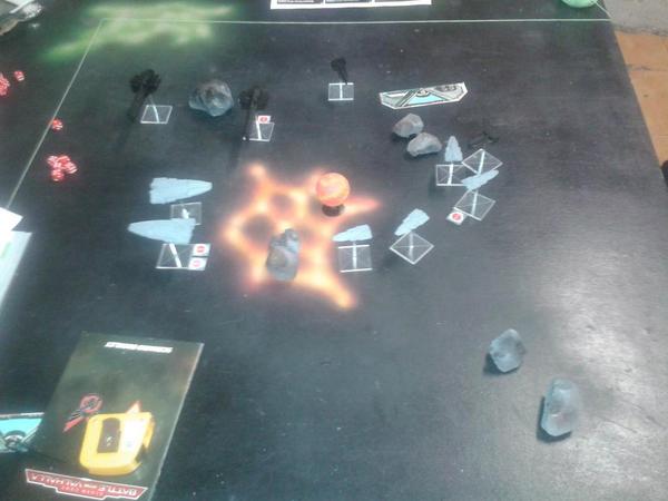 Ok, gracias, entonces lo estabamos haciendo mal en mi grupo, solo aplicabamos una vez el daño (el de 2 puntos o 2d3 si salia doble 1 una unica vez y los dos efectos). De esta forma se hace el juego mas rapido pues un crucero lo puede volatilizar de un buen disparo.