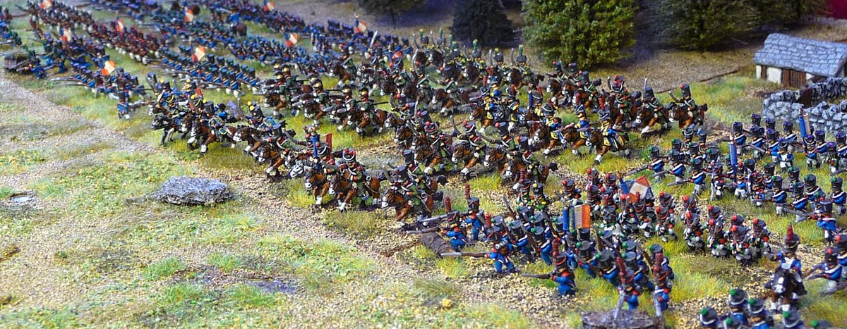 Tampoco me parece bien visualmente hablando bajar la escala para meter las mismas miniaturas en formación de dos en fondo y hacer lo mismo que ya hacías con el 15mm. Ojo, que respeto las cuestiones de presupuesto y yo también las he sufrido: a veces uno busca meterse en más períodos de los que puede abarcar. Pero si hay la opción, me gusta esa sensación de batalla.