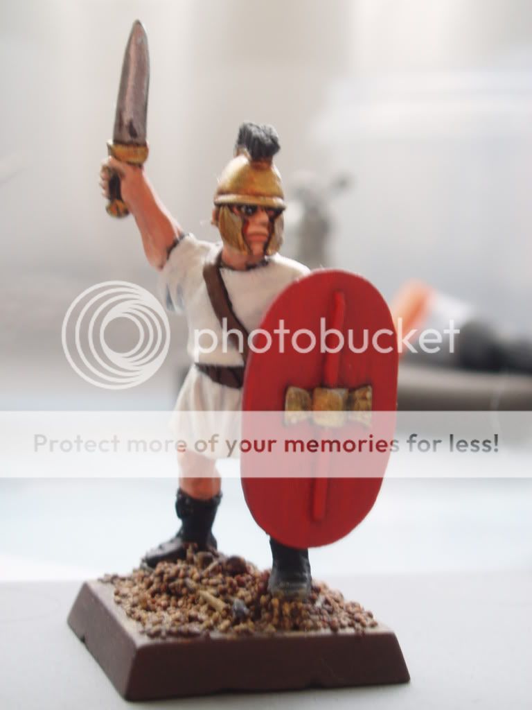 Estoy empezando a montar una unidad de Thureophoroi griegos, como unidad mercenaria para los cartagineses, y con las ganas, he pintado el primero al campeón de la unidad. Os pongo una foto para que lo veáis. El problema, es que creo que me ha quedado muy sosete, porque la túnica es solo blanca, y el escudo rojo entero. Querría saber si alguien, bueno conocedor de la Grecia antigua, me podría orientar un poco, sobre que motivos y colores pintar en las túnicas y en los escudos. Gracias
