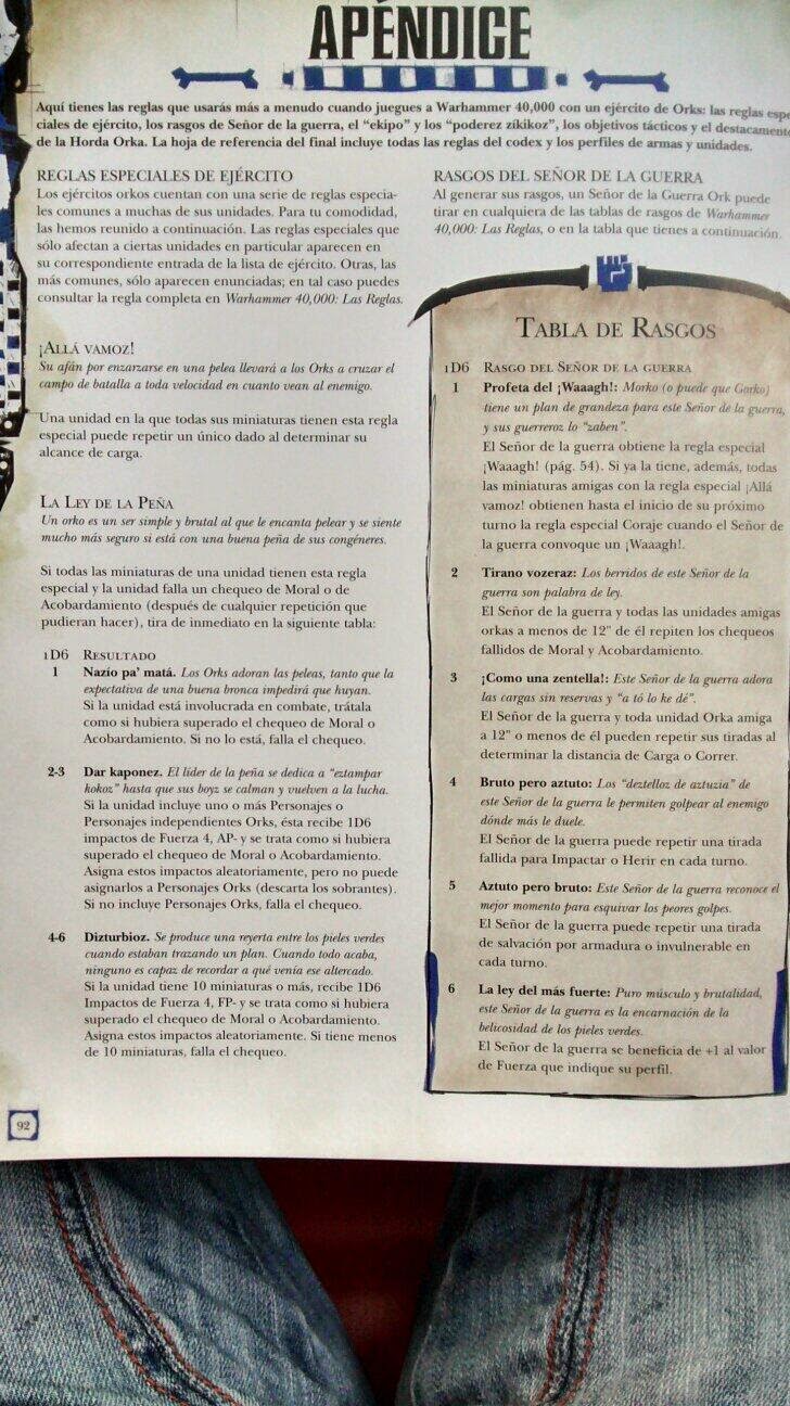 Como vemos los Orkos pierden la habilidad de tener L10 o Coraje, pero tampoco sufren los efectos de psicologia inmediatamente, hay que tirar. Esto claramente obliga a dos cosas, tener las unidades lo mas grande posible, y tener siempre Noble.