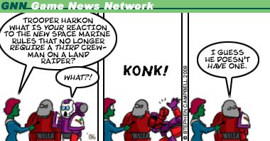 Reportera: soldado Harkon ¿ cual es su reaccion ante las nuevas reglas de los marines espaciales en la cual no es mas requido un tercer tripulante en el land raider ?