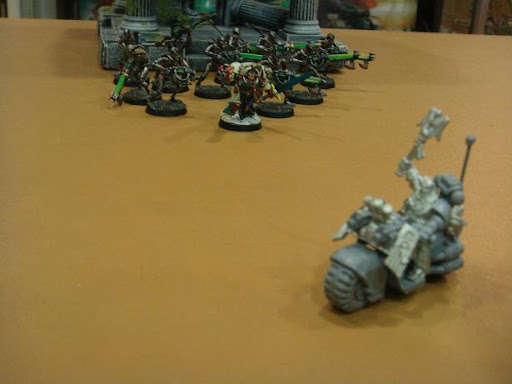 Aqui un lider solitario carga contra media escuadra de tacticos pensando hacerles trocitos.
